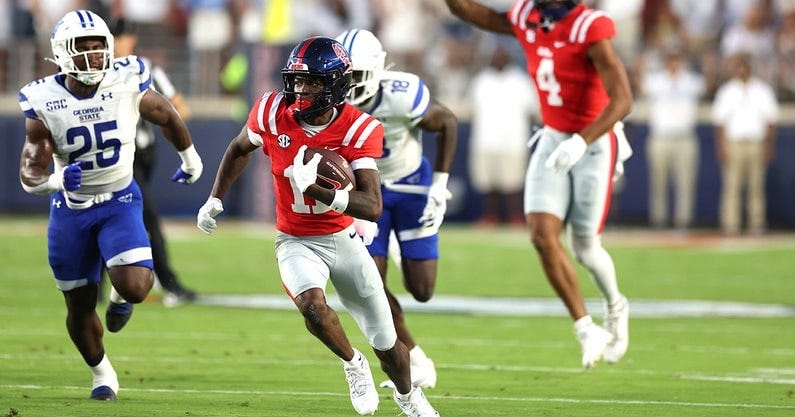 Shocker, Ole Miss has a prolific offense. Breaking: Lane Kiffin has a quarterback who can spin it (even though he made some questionable decisions (skip to minute 2)). None of this is a revelation to any college football fan. Yet the real storyline out of this blowout was how good Kewan Lacy looked for the Rebels. Lacy rushed for 108 yards on 18 carries, looking like the best running back Ole Miss has had since Quinshon Judkins left the program. If the Rebels can feature a dangerous run game to pair with the patented Lane Kiffin aerial attack, look out, SEC defenses.